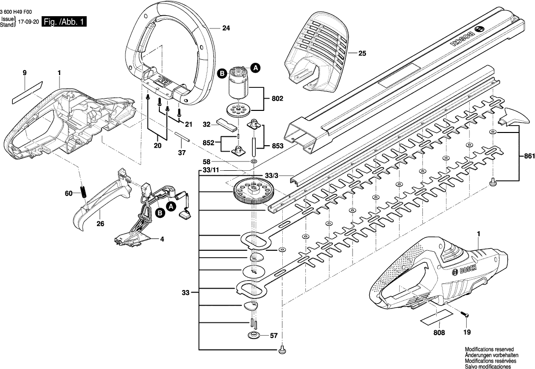 Hier finden Sie alle verfügbaren Teile und Zeichnungen der 'Bosch 3600H49F00 ( AHS50-20LI )'. Von hier aus können Sie alle gewünschten Teile direkt bestellen. Viele Teile müssen je nach Marke beim Hersteller bestellt werden, dies dauert ein bis vier Wochen. Alle Informationen, die wir haben, befinden sich auf unserer Website. Wir können Sie nicht beraten, was Sie benötigen. Dazu müssen Sie die Maschine zur Reparatur zurücksenden. Bitte beachten Sie bei der Bestellung Folgendes: