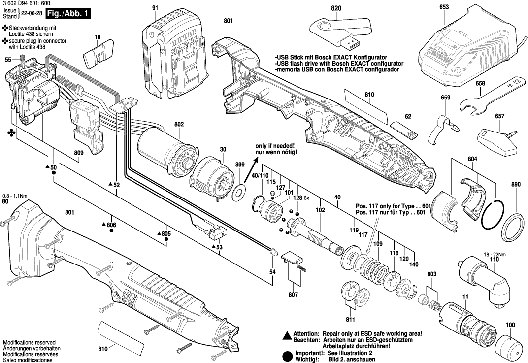 Zeichnungen der Bosch 3602D94600 ( ANGLEEXACTION8-1100 )
