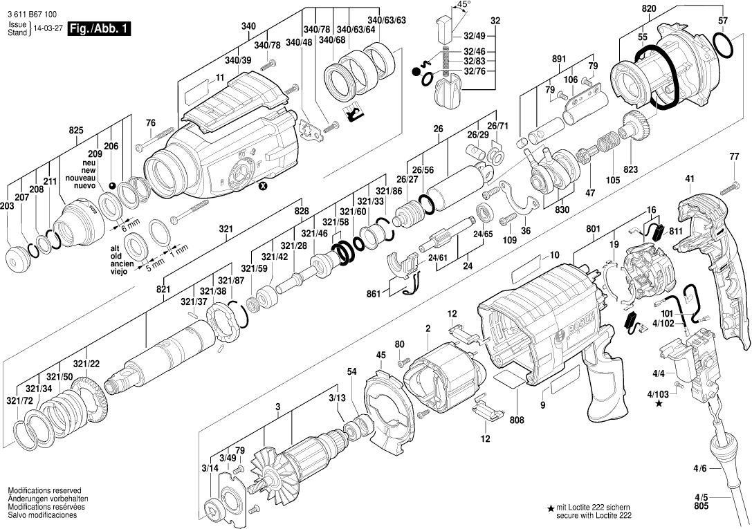 Zeichnungen der Bosch 3611B67140 ( GBH2-28DV )