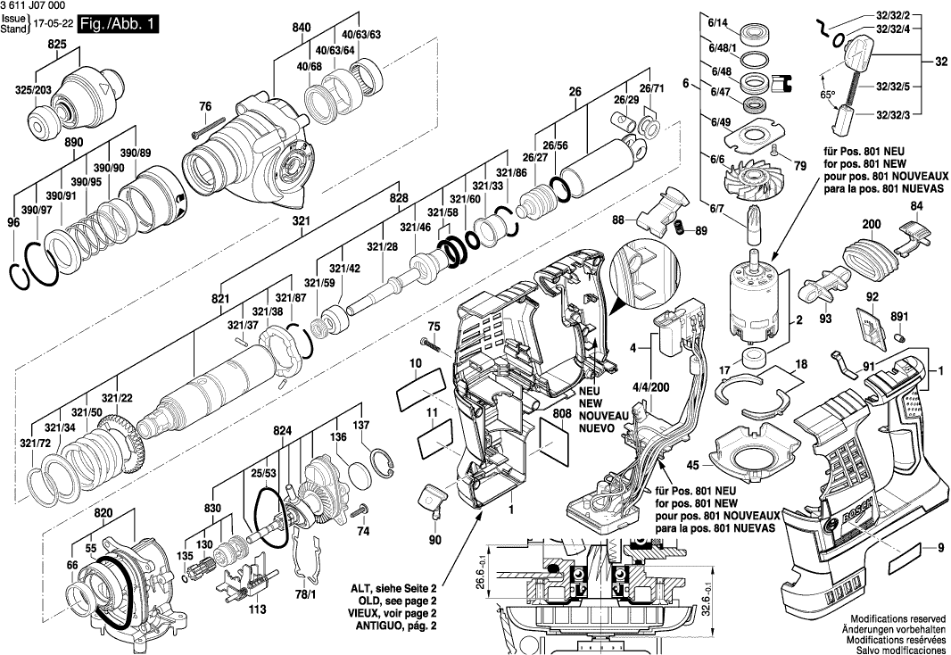 Zeichnungen der Bosch 3611J07000 ( GBH36VF-LIPLUS )