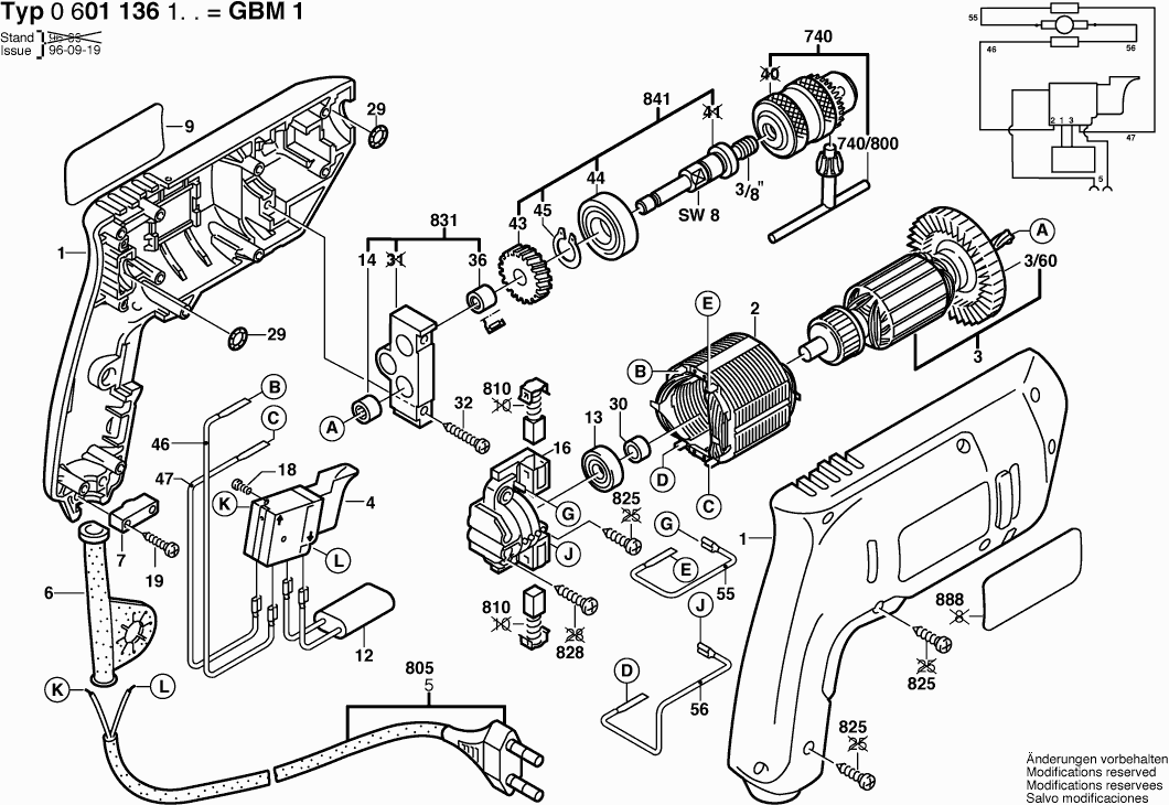 Zeichnungen der Bosch 0601136103 ( GBM1 )