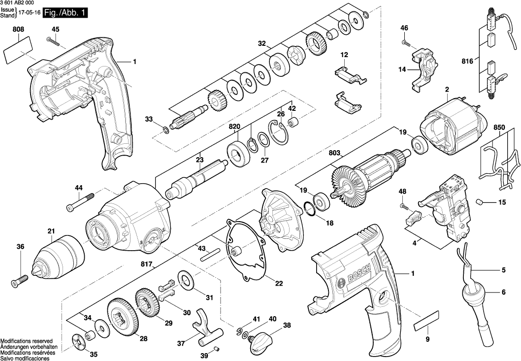 Zeichnungen der Bosch 3601AB2002 ( GBM13-2RE )