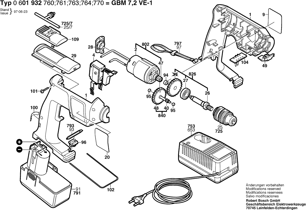Teileliste der Bosch 0601932760 ( GBM7,2VE-1 )