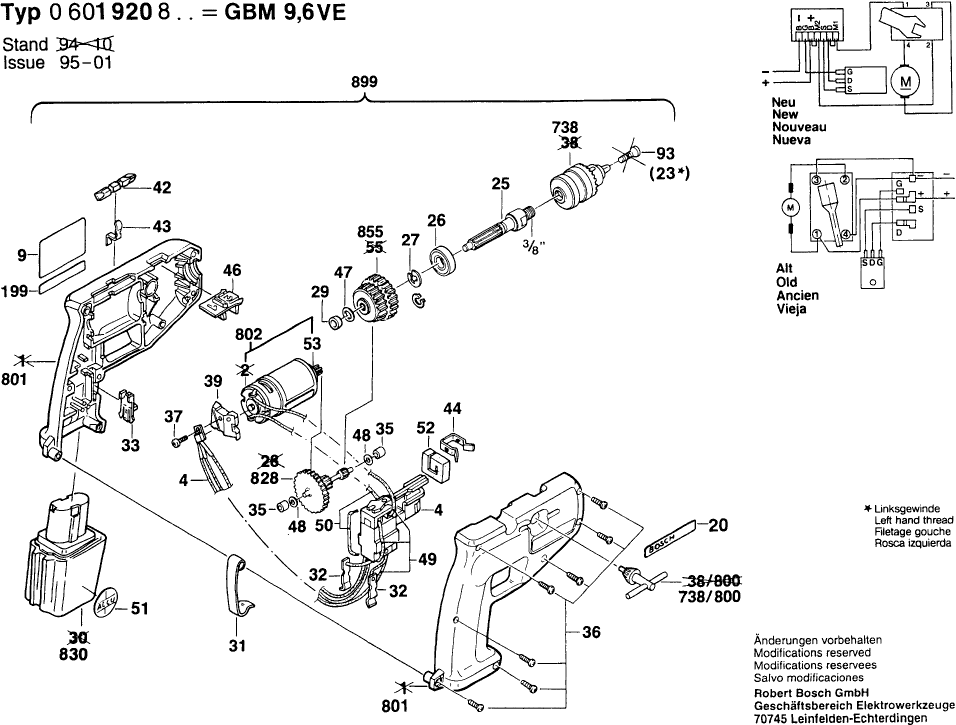 Zeichnungen der Bosch 0601920803 ( GBM9,6VE )