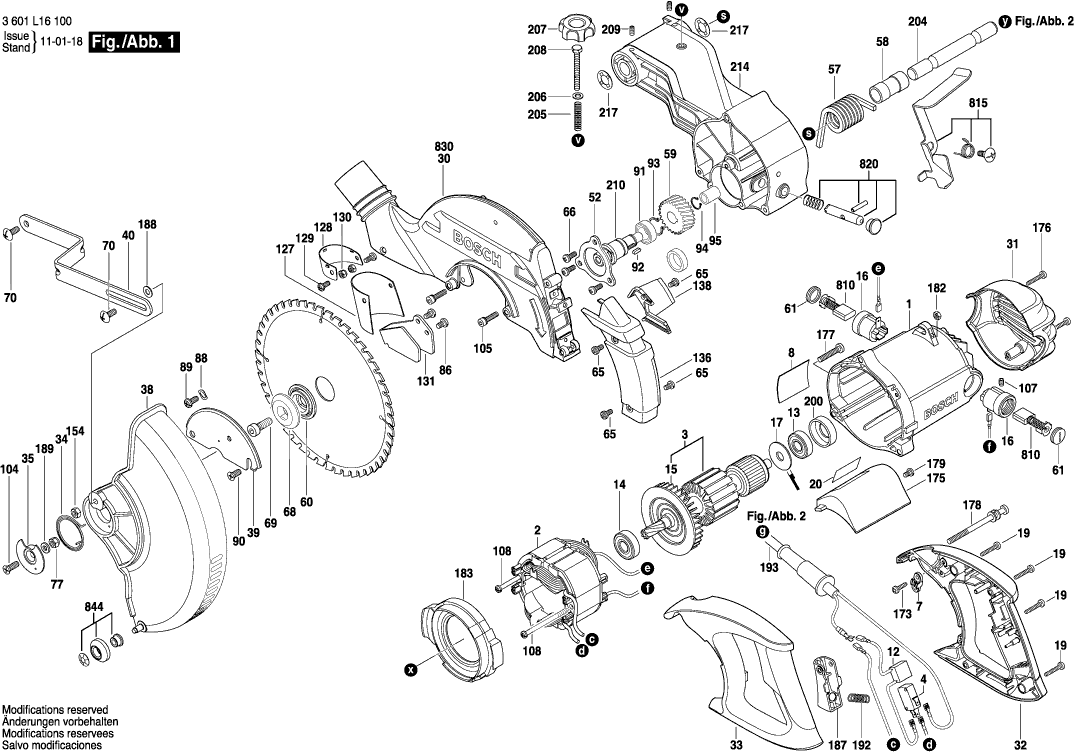 Zeichnungen der Bosch 3601L16100 ( GCM800S )
