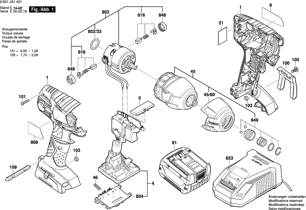 Zeichnungen der Bosch 3601JA1401 ( GDR14,4V-LI )