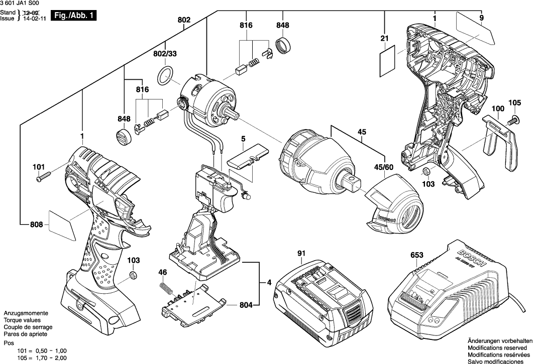 Zeichnungen der Bosch 3601JA1S00 ( GDS18V-LI )