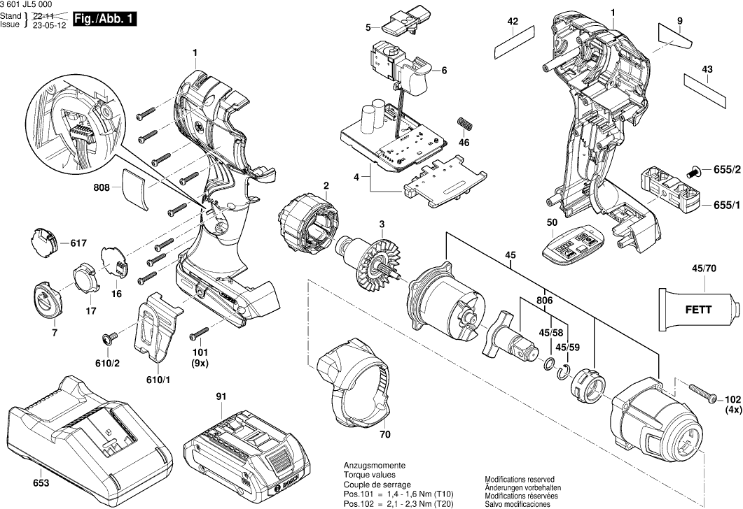 Zeichnungen der Bosch 3601JL5000 ( GDS18V-330HC )