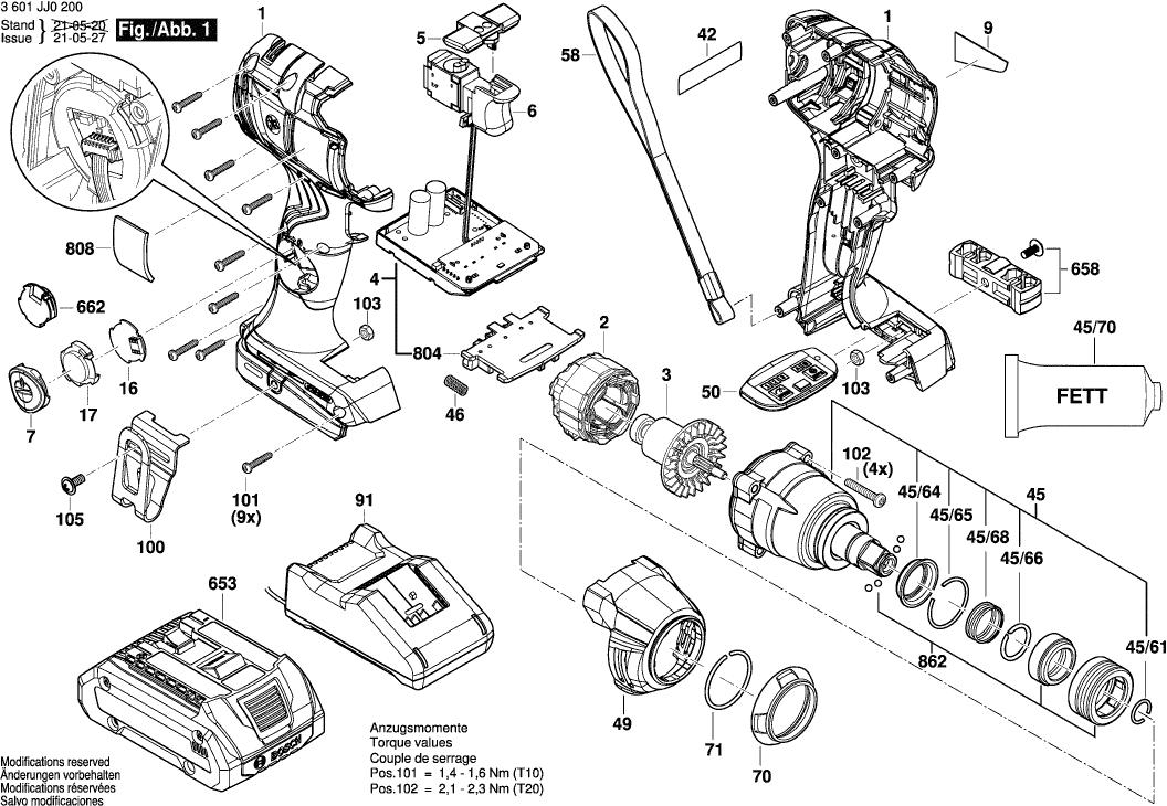 Zeichnungen der Bosch 3601JJ0200 ( GDX18V-210C )