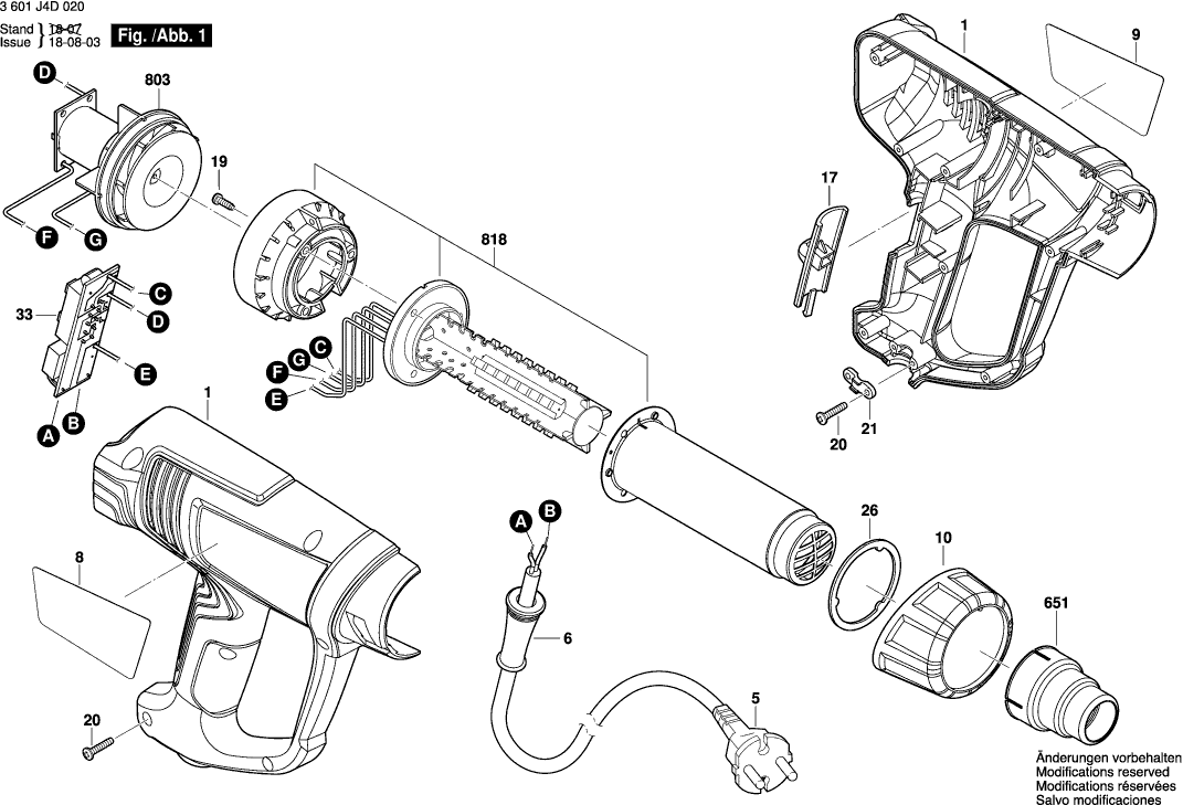 Zeichnungen der Bosch 3601J4D020 ( GHG180 )