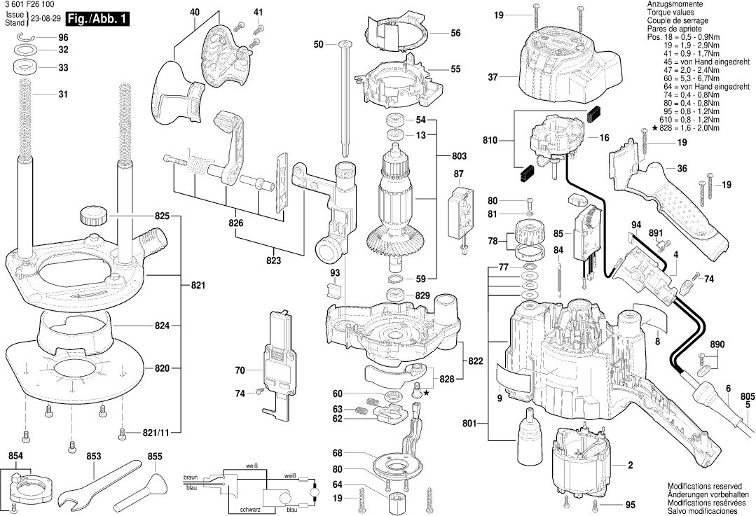 Zeichnungen der Bosch 3601F26100 ( GOF1250LCE )