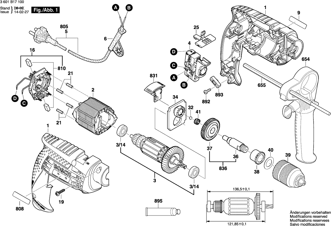 Zeichnungen der Bosch 3601B17100 ( GSB13RE )