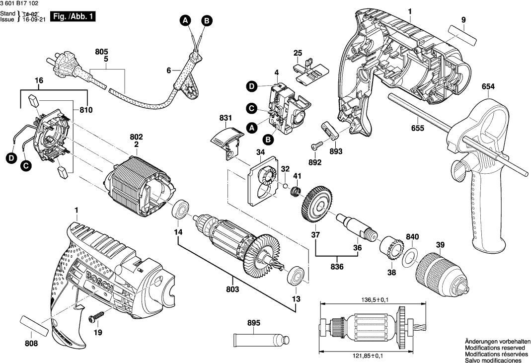Zeichnungen der Bosch 3601B17102 ( GSB13RE )