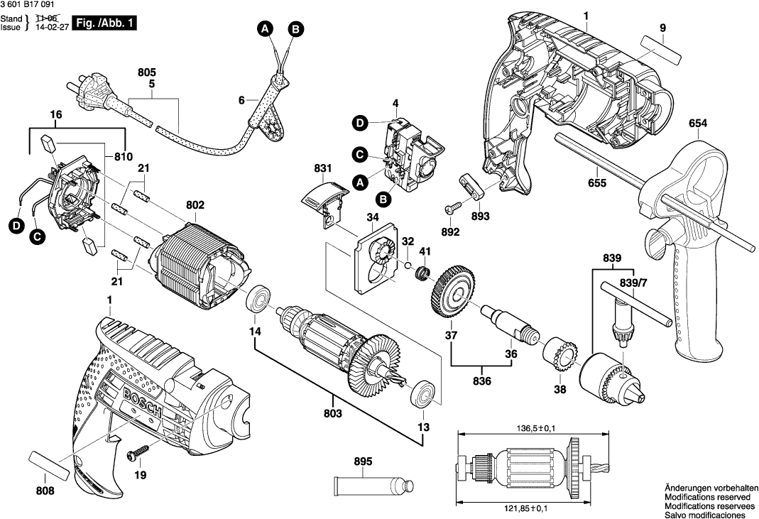 Zeichnungen der Bosch 3601B17070 ( GSB13 )