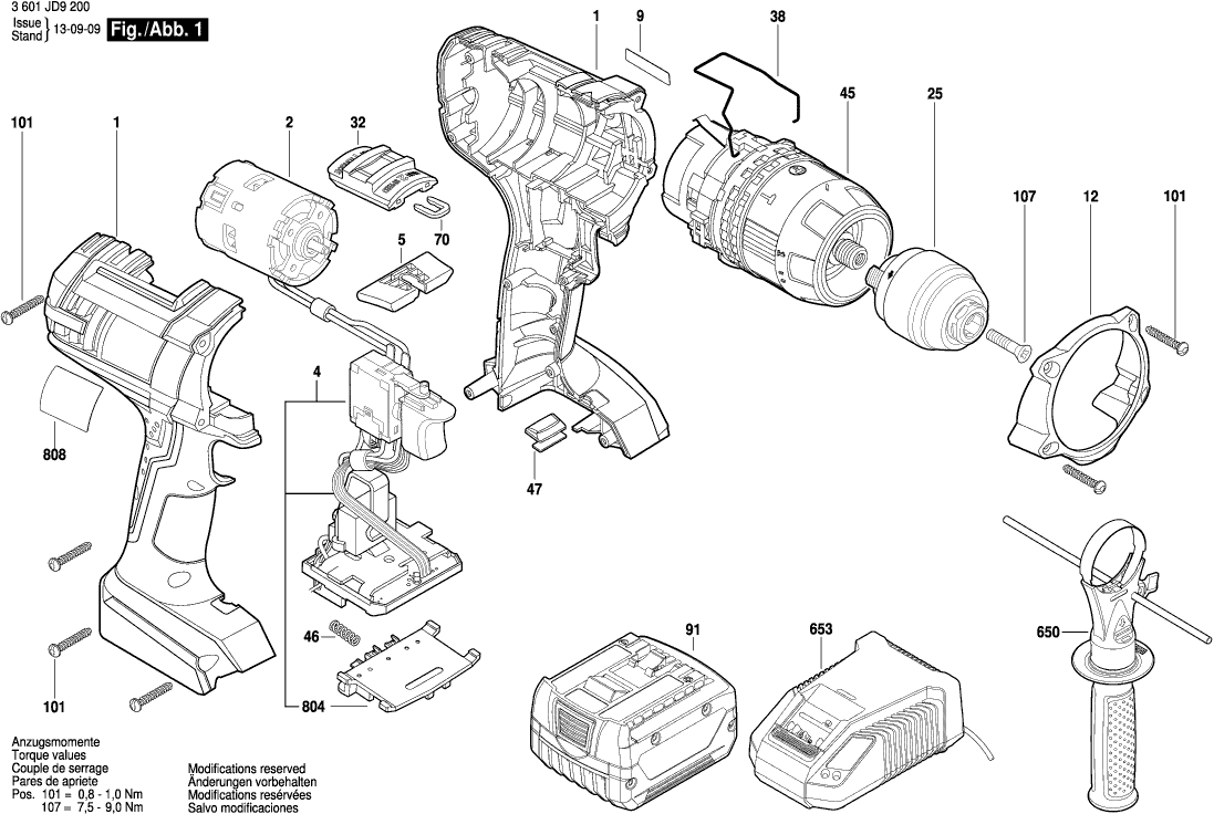 Zeichnungen der Bosch 3601JD9200 ( GSB14,4VE-2-LI )