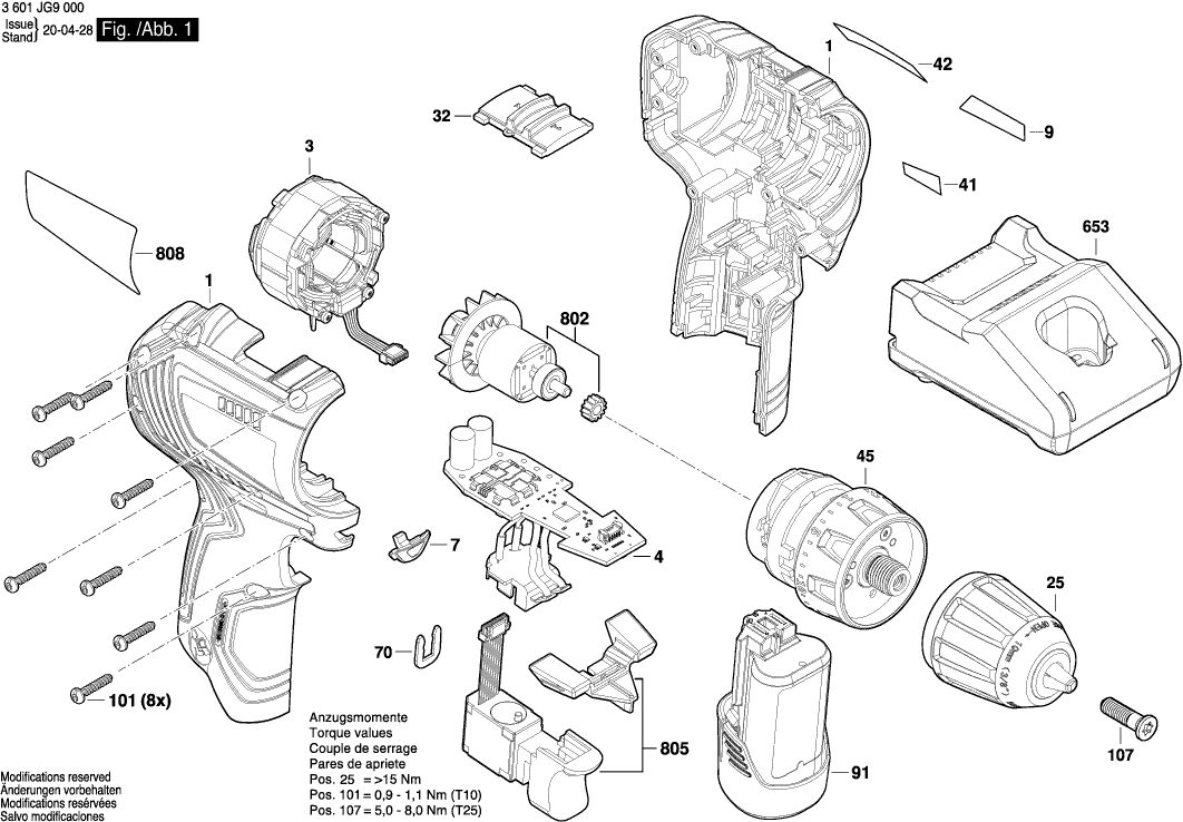 Zeichnungen der Bosch 3601JG9000 ( GSR12V-30 )