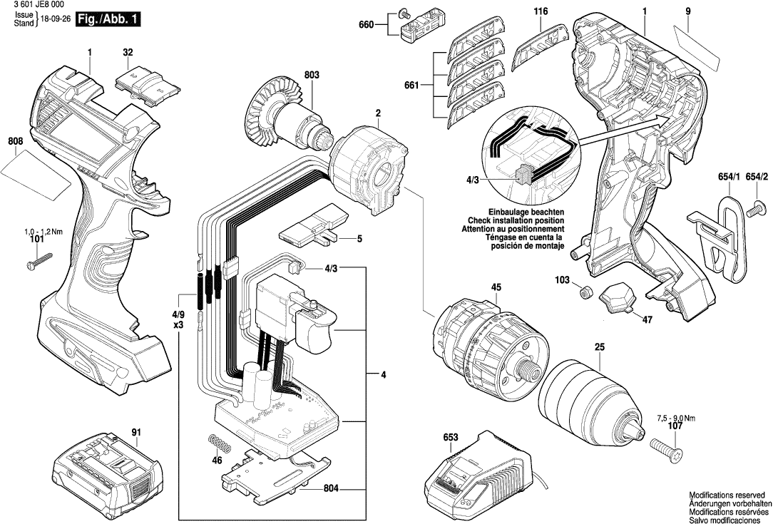 Zeichnungen der Bosch 3601JE8000 ( GSR14,4V-EC )
