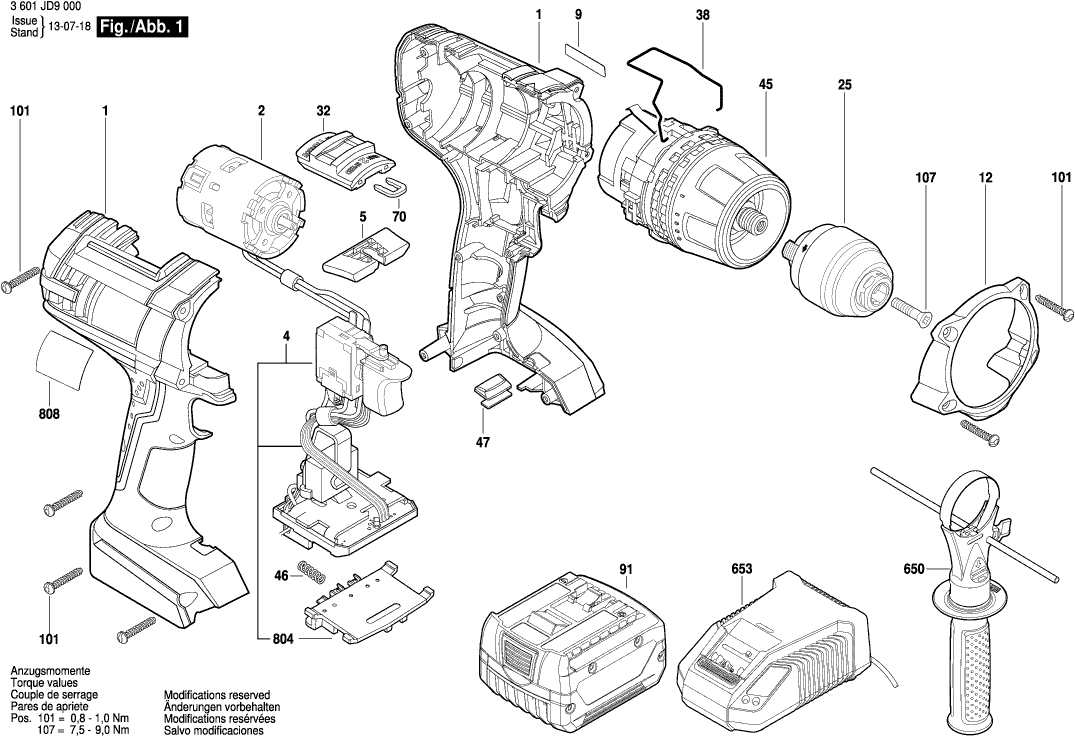 Zeichnungen der Bosch 3601JD9000 ( GSR14,4VE-2-LI )