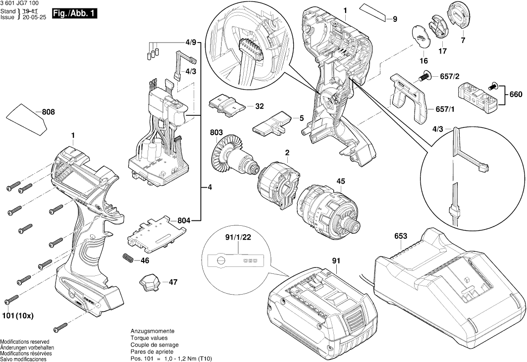 Zeichnungen der Bosch 3601JG7100 ( GSR18V-60FC )