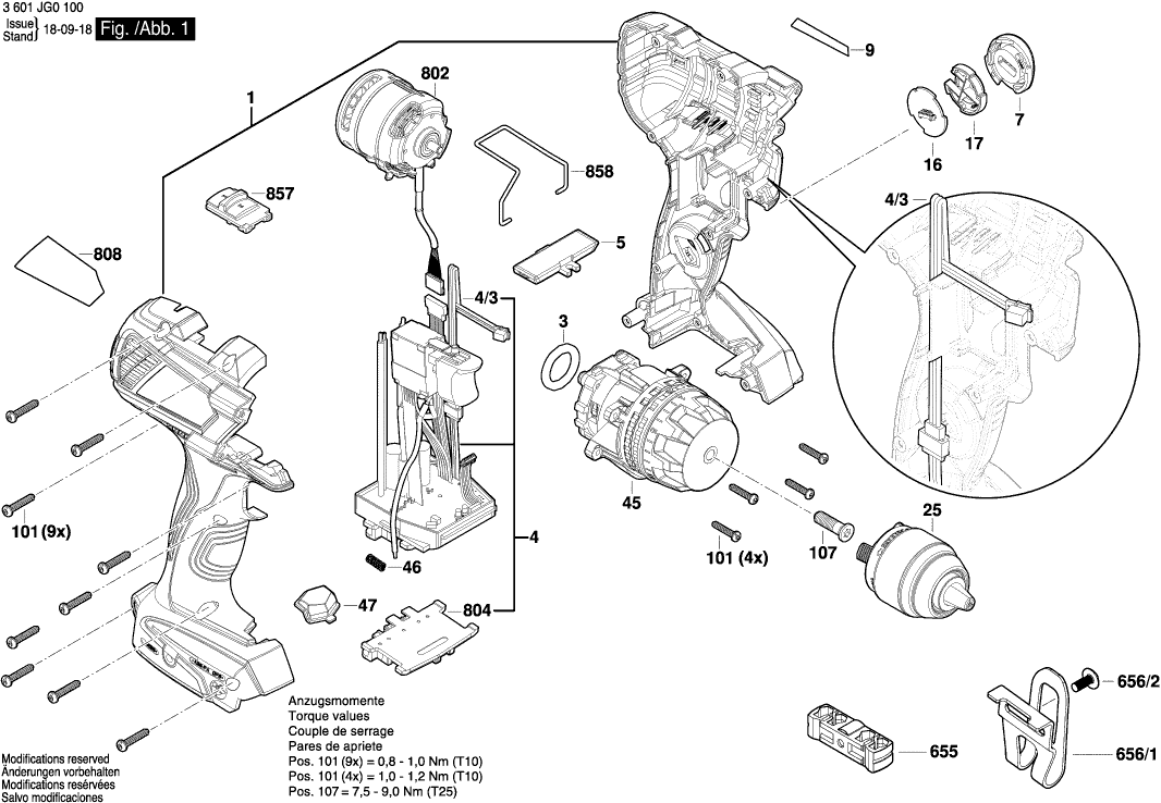 Zeichnungen der Bosch 3601JG0100 ( GSR18V-85C )