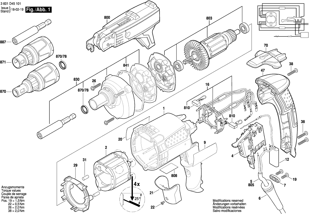 Zeichnungen der Bosch 3601D45101 ( GSR6-45TE )