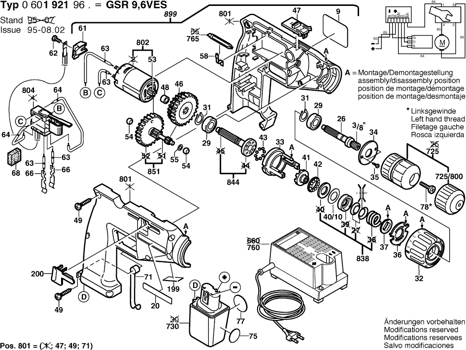 Zeichnungen der Bosch 0601921968 ( GSR9,6VES )