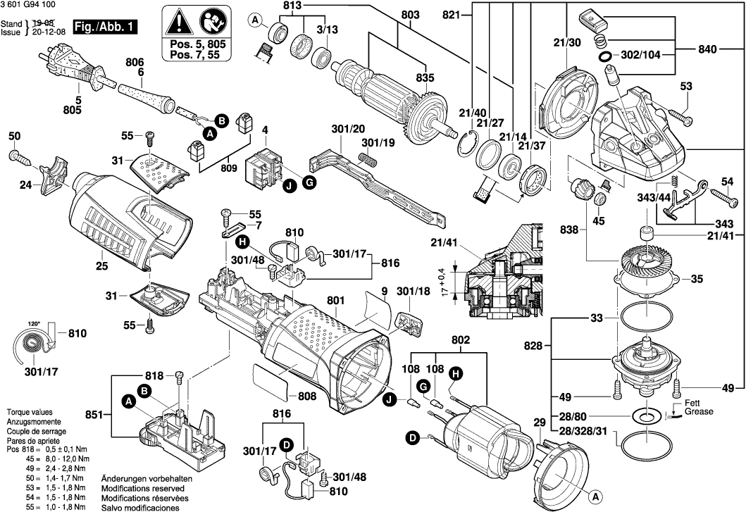 Zeichnungen der Bosch 3601G94100 ( GWS12-125CIEX )