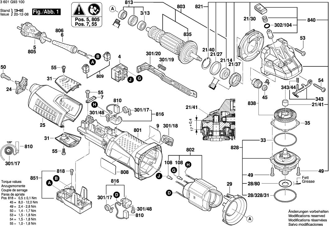 Zeichnungen der Bosch 3601G93100 ( GWS12-125CIX )