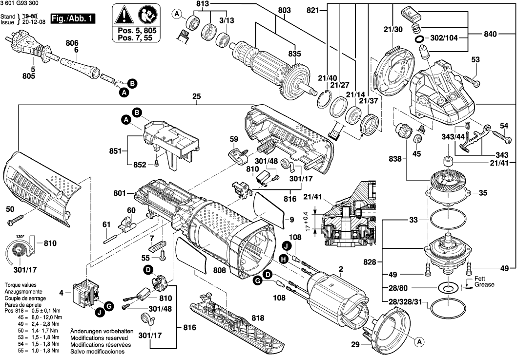 Zeichnungen der Bosch 3601G95340 ( GWS15-125CIPX )