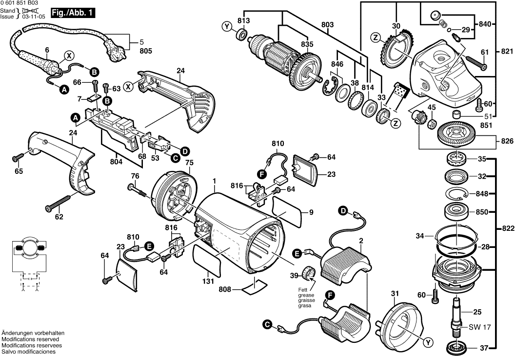 Zeichnungen der Bosch 0601852B03 ( GWS21-230HV )