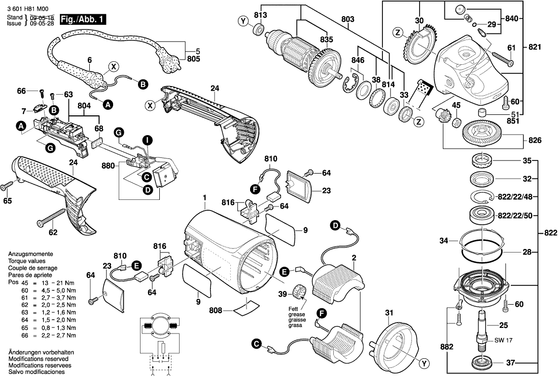 Zeichnungen der Bosch 3601H81M00 ( GWS22-180JH )