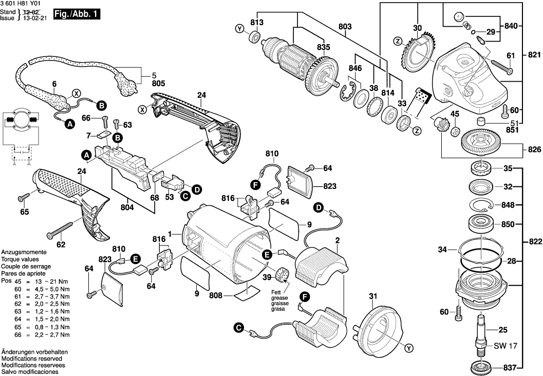 Zeichnungen der Bosch 3601H82X01 ( GWS22-230H )