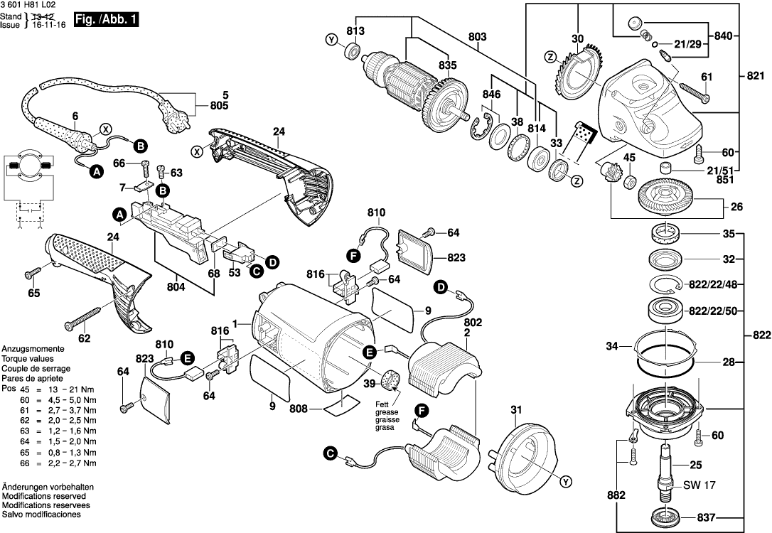 Zeichnungen der Bosch 3601H82103 ( GWS22-230H )