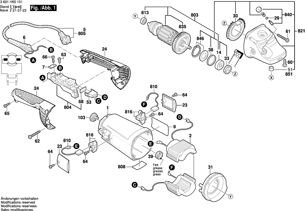 Zeichnungen der Bosch 3601H55101 ( GWS26-180JH )