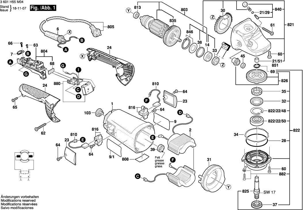 Zeichnungen der Bosch 3601H55M04 ( GWS26-180JH )