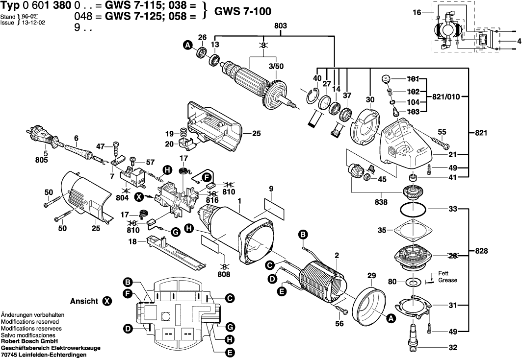 Zeichnungen der Bosch 0601380948 ( GWS7-115 )
