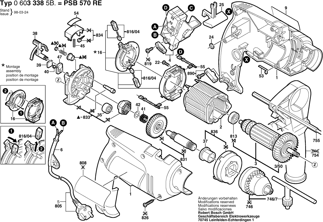 Zeichnungen der Bosch 06033385B5 ( PSB570RE )