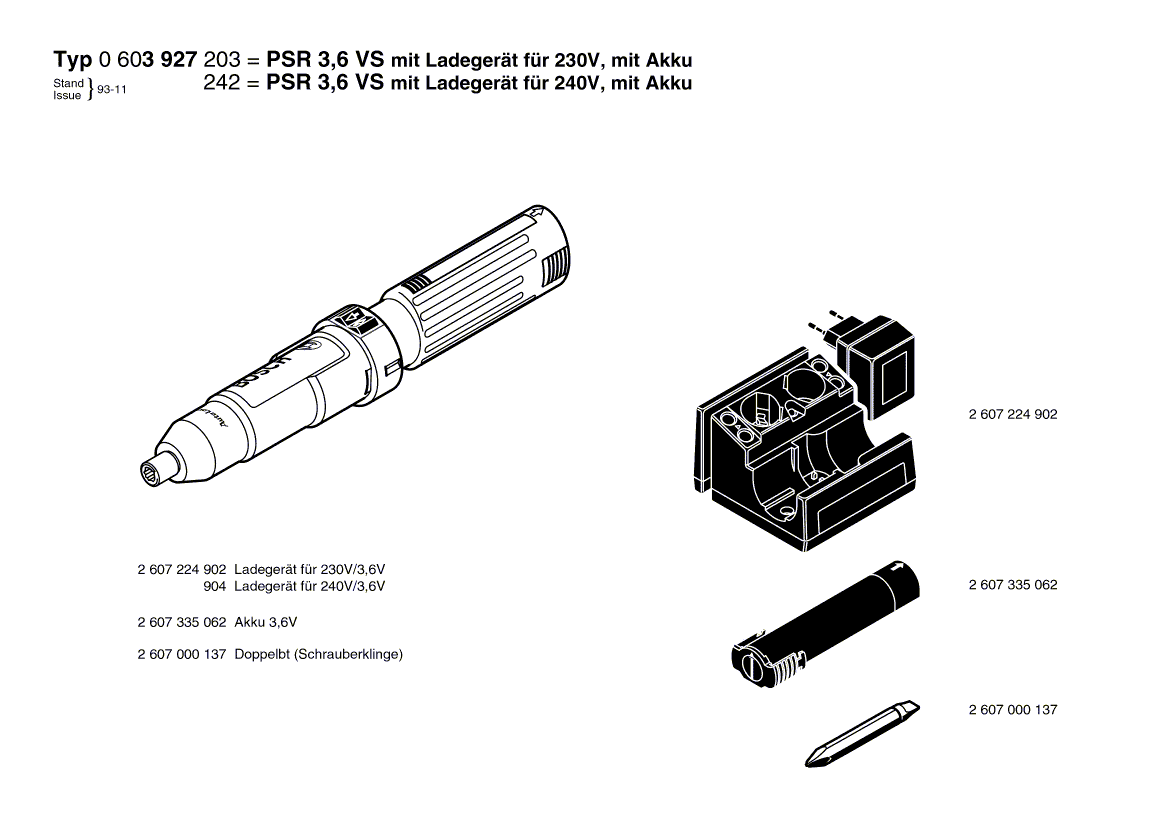 Zeichnungen der Bosch 0603927203 ( PSR3,6V )