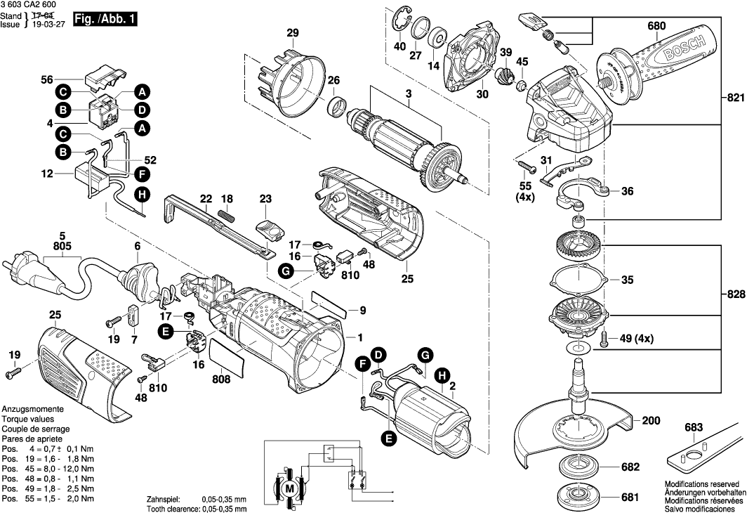 Zeichnungen der Bosch 3603CA2600 ( PWS1000-125 )