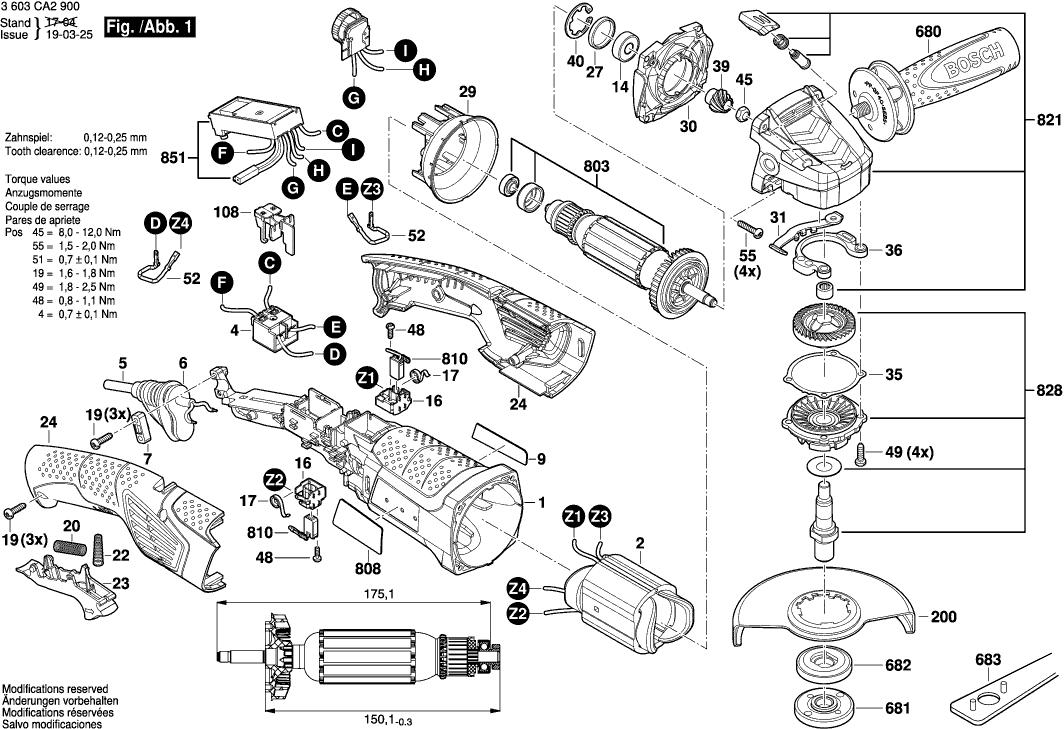 Zeichnungen der Bosch 3603CA2900 ( PWS1300-125CE )