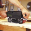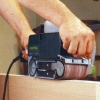 De handige vlakschuurmachine. werken zonder vermoeidheid door de uitgebalanceerde positie van het zwaartepunt van de motor die in de lengterichting ligt. Perfecte werkresultaten met de meest uiteenlopende materialen door de traploos instelbare bandsnelheid voor grof- en fijnschuren. Economisch werken door de hoge doortrekkracht van de motor. (Zwaartepunten voor de toepassingen). Vlakschuren van oppervlakken. Opschuren van hoogwaardige, gefineerde oppervlakken. Machineslag van de schaaf uitschuren. Plinten schuren met de stationaire-inrichting.