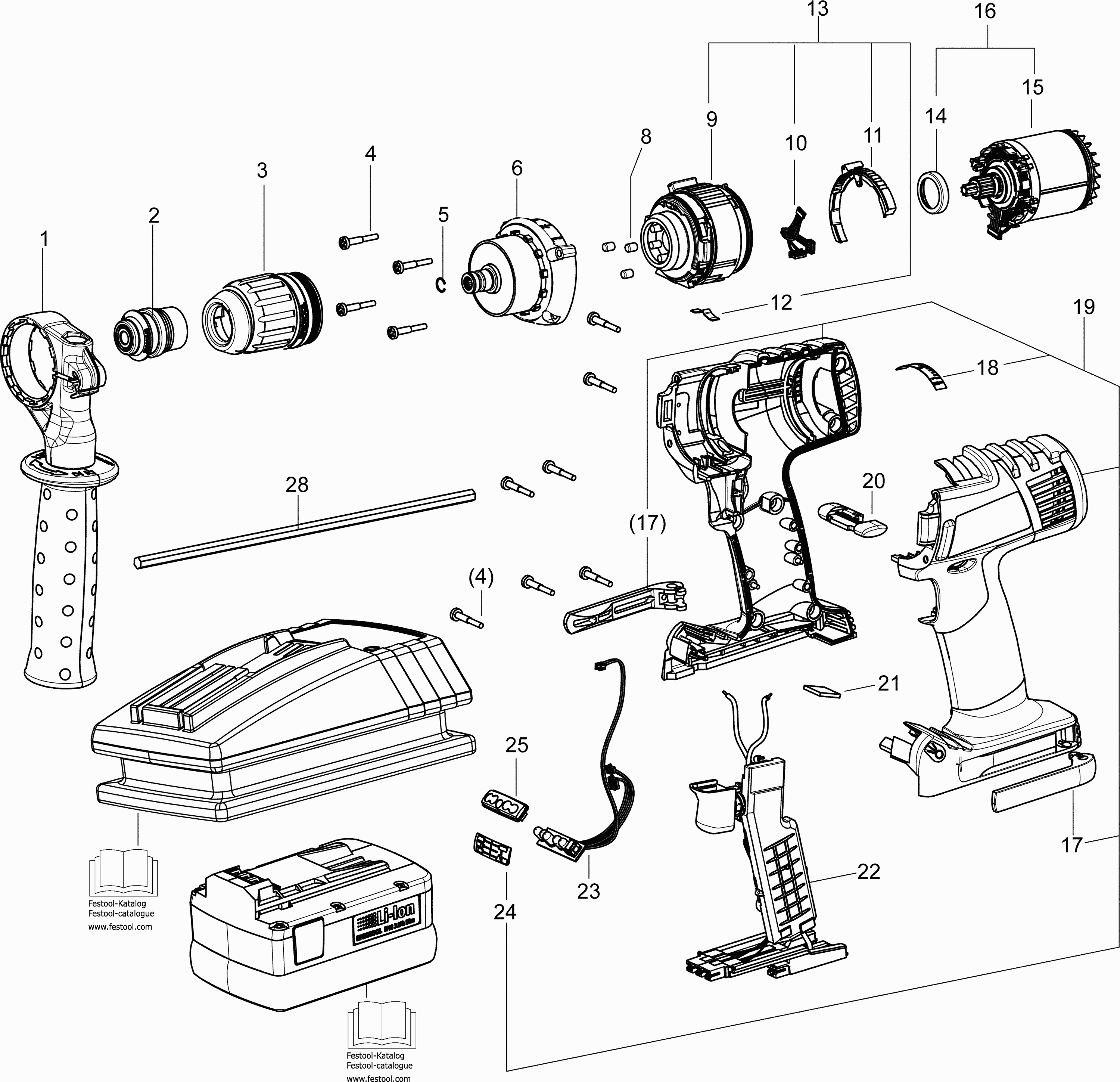 Hier finden Sie alle verfügbaren Teile und Zeichnungen der 'Festool 205066 ( DRC18/4 )'. Von hier aus können Sie alle gewünschten Teile direkt bestellen. Viele Teile müssen je nach Marke beim Hersteller bestellt werden, dies dauert ein bis vier Wochen. Alle Informationen, die wir haben, befinden sich auf unserer Website. Wir können Sie nicht beraten, was Sie benötigen. Dazu müssen Sie die Maschine zur Reparatur zurücksenden. Bitte beachten Sie bei der Bestellung Folgendes: