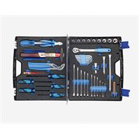 GEREEDSCHAPKOFFER TOURING 49-delig. De perfecte gereedschapset voor vele doeleinden. Samengesteld naar aanleiding van eisen en wensen uit de dagelijkse praktijk. Opgeborgen in een handzame, robuuste kunststof koffer. Deze set kent vele gebruiksmogelijkheden, o.a. in auto, boot, caravan, huis of tuin. Eigenlijk overal waar goed gereedschap nodig is. Alle 49 delen zijn netjes gerangschikt en stevig vastgeklemd, tussenplaat zorgt voor duurzame beveiliging van het gereedschap in hun uitsparingen. Met de TOURING klaart u vele reparatie-, onderhouds- en montage-klussen in een handomdraai!. Slagvaste, geblazen polypropyleen-koffer, bestand tegen olie en zuren, ongevoelig voor weers- en temperatuursinvloeden, met Check-Tool-inzet. GEDORE-vanadium gereedschappen, verchroomd.