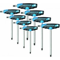 Ergonomisch, veelzijdig en belastbaar. De 8-delige set GEDORE haakse stiftsleutels bevat de nieuwe T-grepen in 2-componenten-ontwerp met geoptimaliseerde ergonomie voor een betere krachtoverbrenging. De DT 2142-uitvoering heeft een dubbele kling waarvan telkens de langere kling uitgerust is met een kogelkop voor moeilijk bereikbare plekken. De korte kling brengt door de langere hefboomarm een hoger draaimoment over, ideaal voor het losdraaien van vastzittende schroeven. De klingen zijn van GEDORE vanadiumstaal 61CrSiV5. De set bestaat uit de 8 meest gangbare haakse stiftsleutels van 2 tot 10 mm en is een MUST voor elke werkplaats.