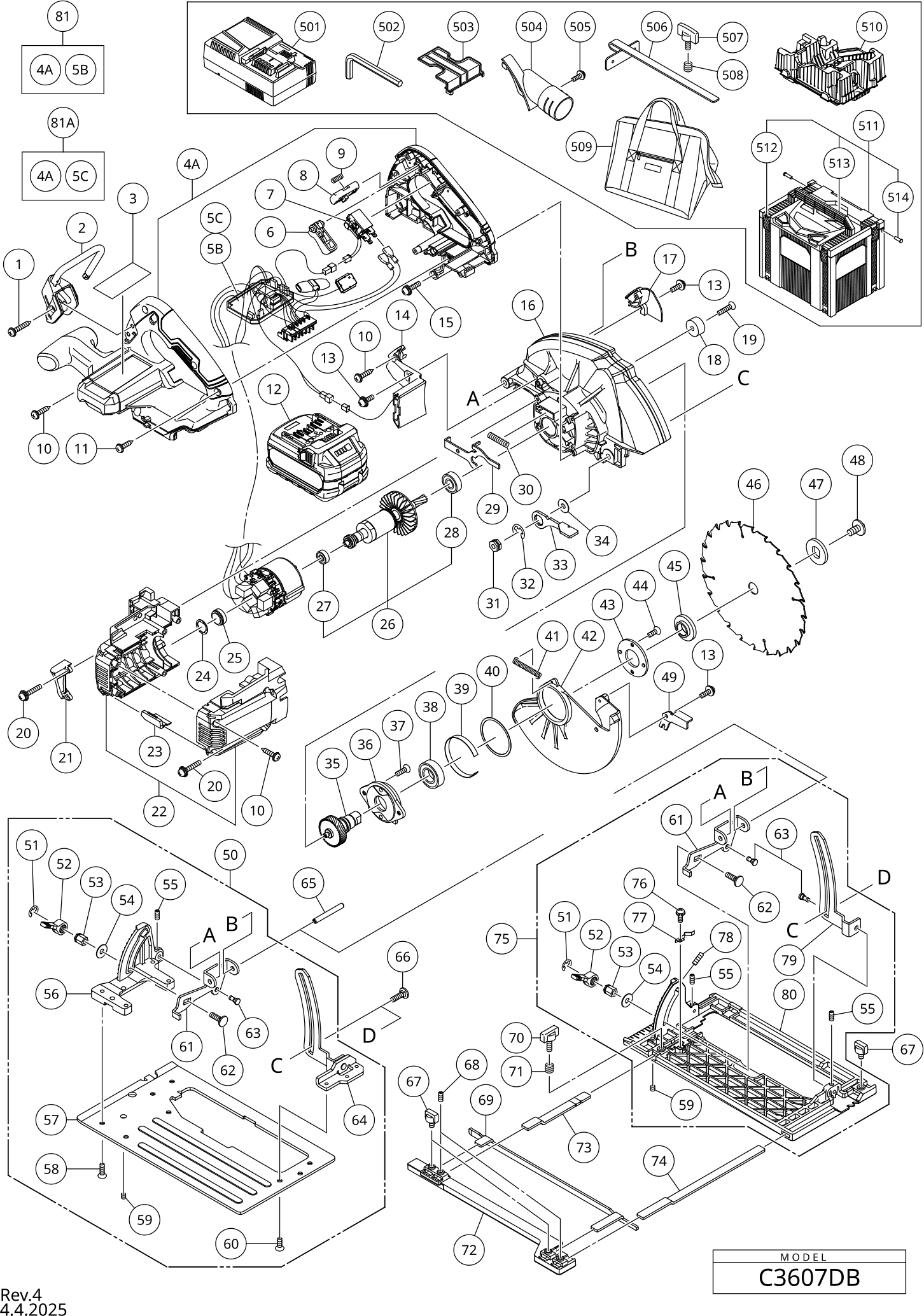 Teileliste der Hikoki C3607DB