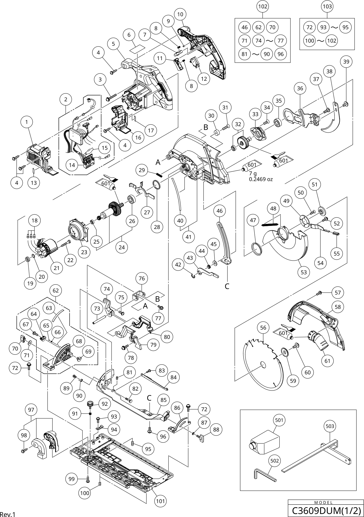 Hier finden Sie alle verfügbaren Teile und Zeichnungen der 'Hikoki C3609DUM'. Von hier aus können Sie alle gewünschten Teile direkt bestellen. Viele Teile müssen je nach Marke beim Hersteller bestellt werden, dies dauert ein bis vier Wochen. Alle Informationen, die wir haben, befinden sich auf unserer Website. Wir können Sie nicht beraten, was Sie benötigen. Dazu müssen Sie die Maschine zur Reparatur zurücksenden. Bitte beachten Sie bei der Bestellung Folgendes: