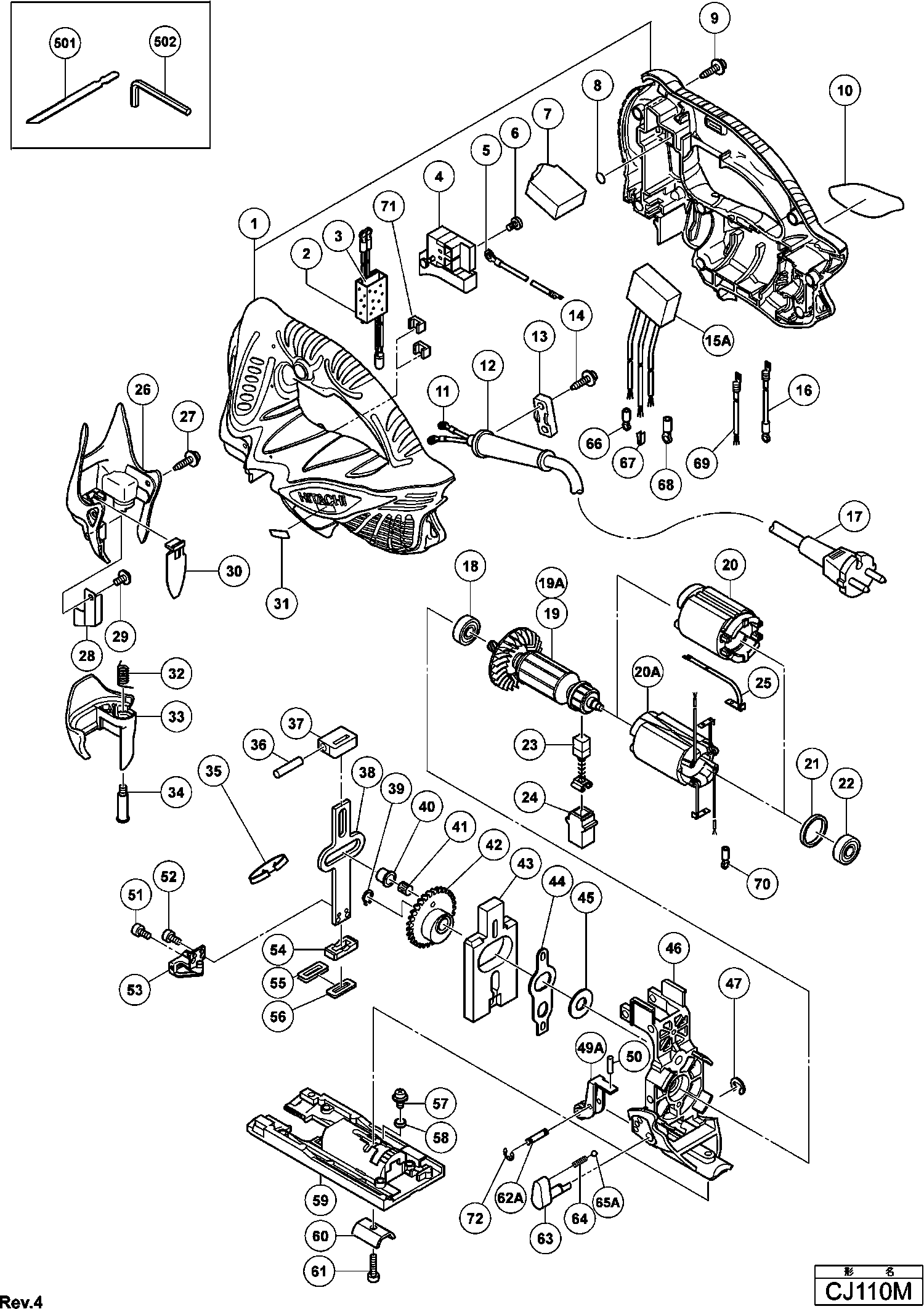 Hier finden Sie alle verfügbaren Teile und Zeichnungen der 'Hikoki CJ110M'. Von hier aus können Sie alle gewünschten Teile direkt bestellen. Viele Teile müssen je nach Marke beim Hersteller bestellt werden, dies dauert ein bis vier Wochen. Alle Informationen, die wir haben, befinden sich auf unserer Website. Wir können Sie nicht beraten, was Sie benötigen. Dazu müssen Sie die Maschine zur Reparatur zurücksenden. Bitte beachten Sie bei der Bestellung Folgendes: