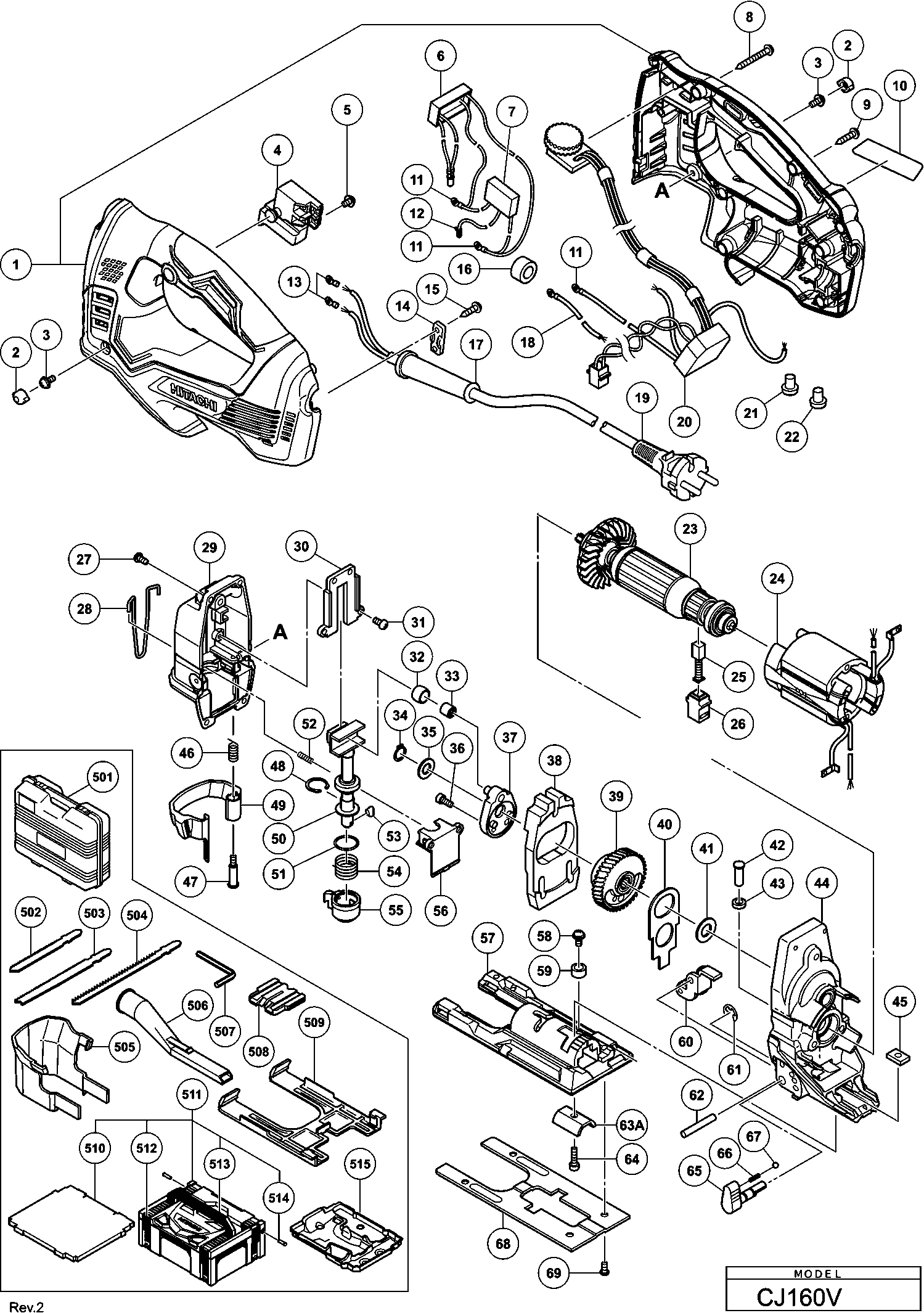 Hier finden Sie alle verfügbaren Teile und Zeichnungen der 'Hikoki CJ160V'. Von hier aus können Sie alle gewünschten Teile direkt bestellen. Viele Teile müssen je nach Marke beim Hersteller bestellt werden, dies dauert ein bis vier Wochen. Alle Informationen, die wir haben, befinden sich auf unserer Website. Wir können Sie nicht beraten, was Sie benötigen. Dazu müssen Sie die Maschine zur Reparatur zurücksenden. Bitte beachten Sie bei der Bestellung Folgendes: