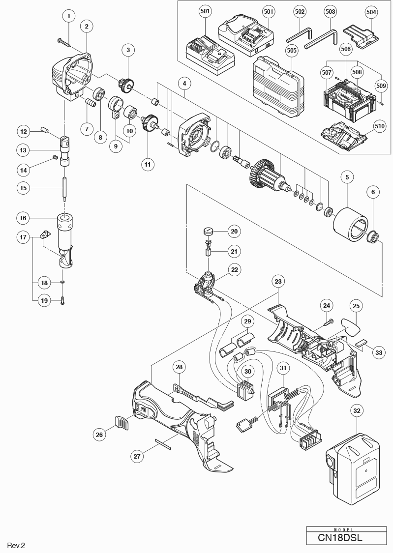Hier finden Sie alle verfügbaren Teile und Zeichnungen der 'Hikoki CN18DSL'. Von hier aus können Sie alle gewünschten Teile direkt bestellen. Viele Teile müssen je nach Marke beim Hersteller bestellt werden, dies dauert ein bis vier Wochen. Alle Informationen, die wir haben, befinden sich auf unserer Website. Wir können Sie nicht beraten, was Sie benötigen. Dazu müssen Sie die Maschine zur Reparatur zurücksenden. Bitte beachten Sie bei der Bestellung Folgendes: