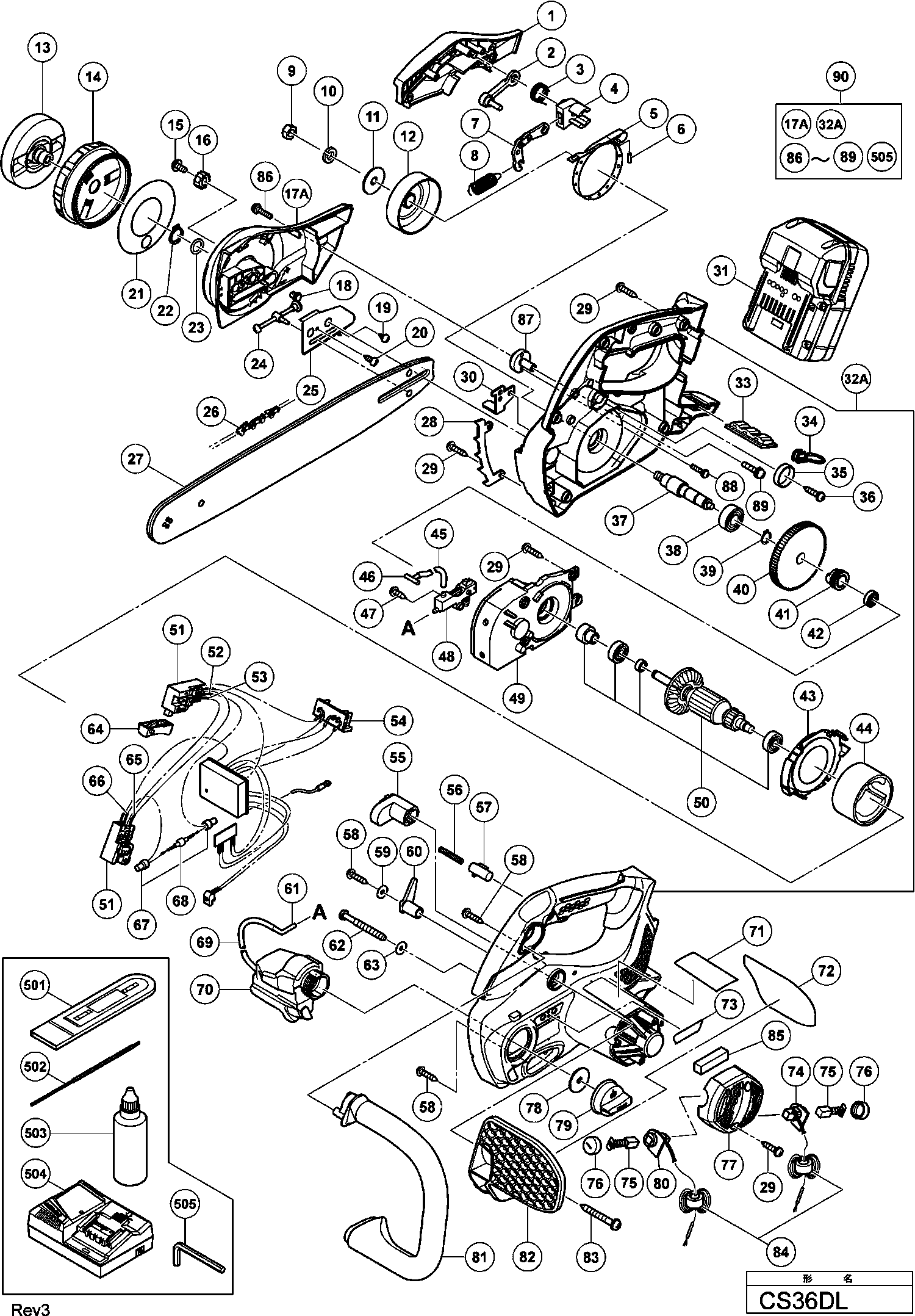Teileliste der Hikoki CS36DL
